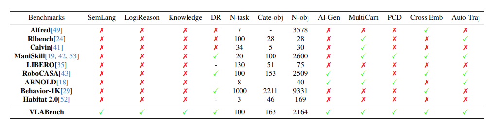 | ๊ธฐ์กด ๋ฒค์น๋งํฌ | VLABench |